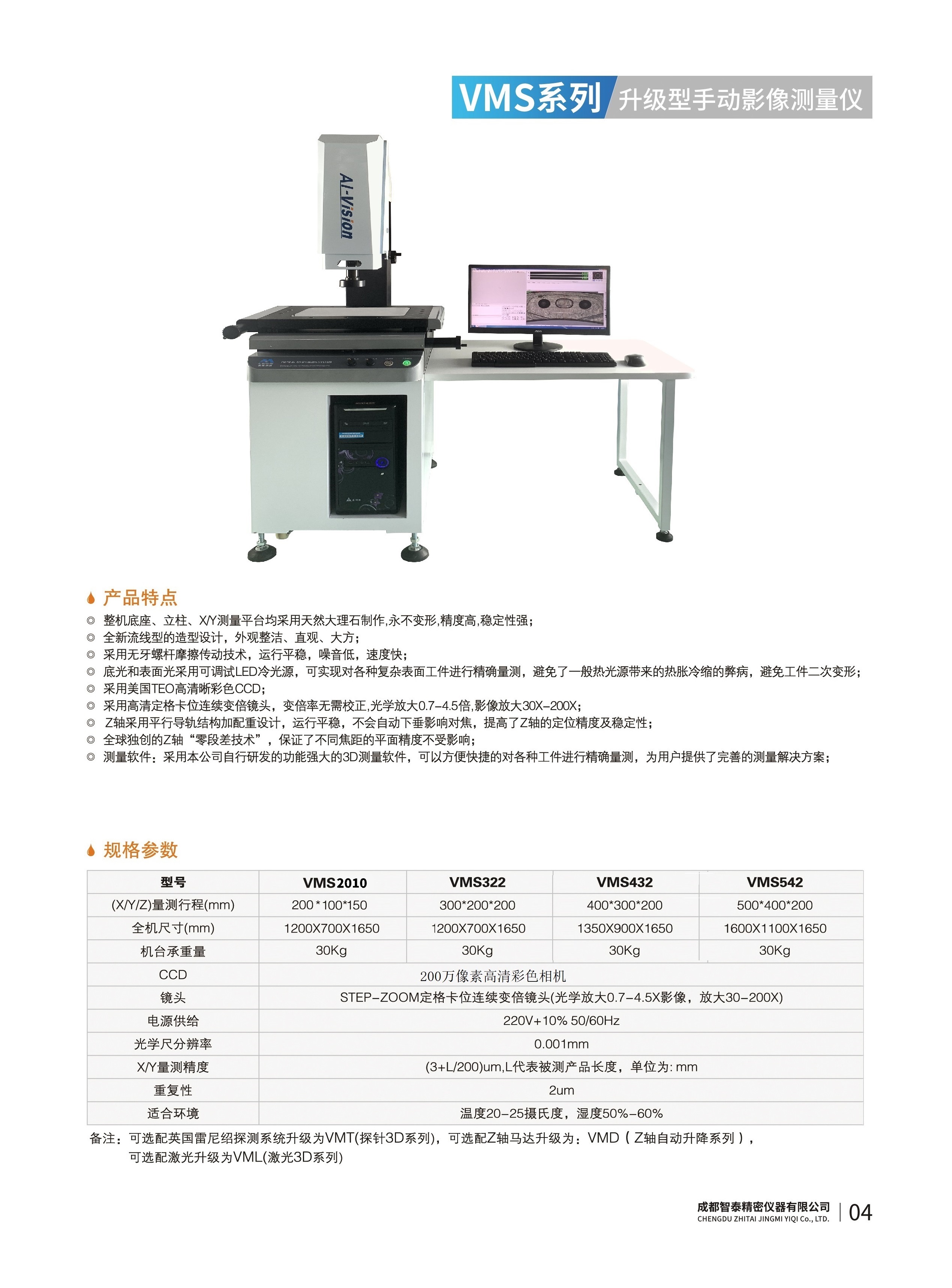 成都智泰精密儀器有限公司專注于精密測量儀器,人工智能,智能制造領(lǐng)域,專業(yè)從事智能視覺自動化檢測解決方案的貿(mào)易型企業(yè)。公司成立于2011年,位于天府之國成都,現(xiàn)有行業(yè)精英十余人,辦公倉儲面積200余平米。 公司主要產(chǎn)品為精密光學(xué)影像測量儀,精密輪廓形狀測量儀,精密機(jī)器人定位系統(tǒng),精密智能視覺尺寸檢測儀器,精密表面缺陷智能檢測設(shè)備,工業(yè)工程特種機(jī)器人。 公司憑借過硬的技術(shù)實(shí)力和產(chǎn)品方案,率先進(jìn)入智能視覺自動化檢測領(lǐng)域,推廣以精密智能視覺自動化檢測為基礎(chǔ)的機(jī)器人自動化應(yīng)用,公司不斷整合上下游的資源,擁有巨大的全產(chǎn)業(yè)鏈優(yōu)勢??蛻羧后w覆蓋了我國精密制造業(yè)的多數(shù)領(lǐng)域,包括航空、航天、軍工、汽車、新能源、光伏、食品,精密電子、精密機(jī)械、模具、PCB、LCD、五金、塑膠、醫(yī)療、教育、計(jì)量及科研院所等行業(yè)。 公司創(chuàng)新的產(chǎn)品能滿足生產(chǎn)與制造行業(yè)客戶的要求,訓(xùn)練有素的工程師能及時(shí)提供多種技術(shù)服務(wù),如解...